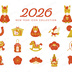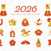 2026 午年 お正月のシンプルなアイコンセット02 / 赤と金
