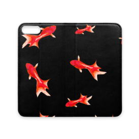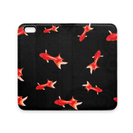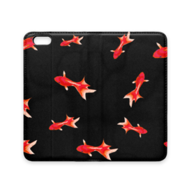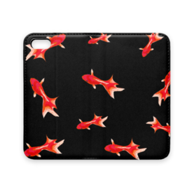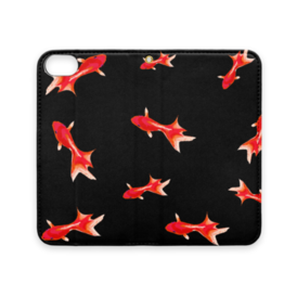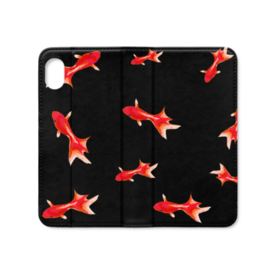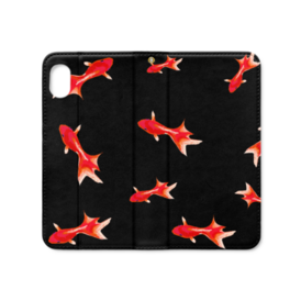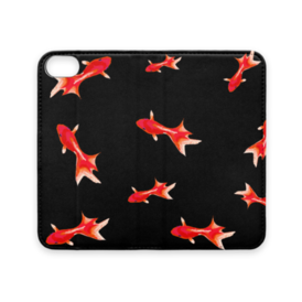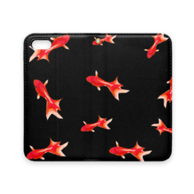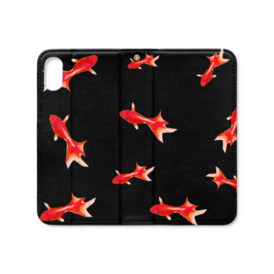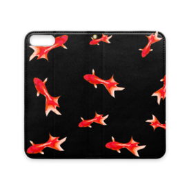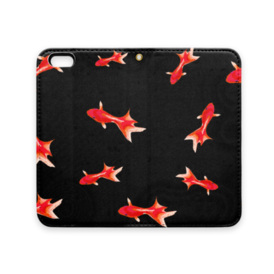 手帳型iPhoneケース 魚06 金魚 レッド ブラック