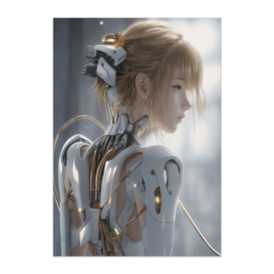 ポスター - B2この商品はpixivFACTORYで作られた商品です。サンプル画像は完成イメージのため、実物と異なる場合があります。 繊細なコードが背に伸び、光とともに息づくアンドロイド。 冷たさの中にやさしさを感じさせる静謐な構図。 背面から描かれる“存在”の美しさを表現。