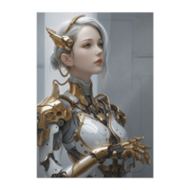 ポスター - B2この商品はpixivFACTORYで作られた商品です。サンプル画像は完成イメージのため、実物と異なる場合があります。 白と金の装甲が光をまとい、 その瞳は静かに遠くを見つめる。 完璧な造形の中にある「思考の美」を描いた一枚。
