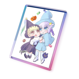 オーロラアクリルキーホルダー - 50 × 50mmこの商品はpixivFACTORYで作られた商品です。サンプル画像は完成イメージのため、実物と異なる場合があります ハロウィンチャリティー販売でのハロウィンもち播きタイムラプス動画に登場した可愛いふたりをグッズ化しました! アクリルのオーロラキーホルダーです もちもちをお楽しみくださいませ