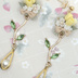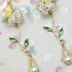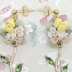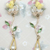 ご覧いただきましてありがとうございます。 樹脂粘土製のパーツとリーフコネクター、チャームを使用したピアスです。 ブーケとリーフコネクターの緑の組み合わせがとてもきれいなお品です。 全長約6cmとちょっと長めなので、耳元を華やかに彩ってくれますよ。 写真ではスタッドピアス(サージカルステンレス)でお仕立てしていますが、お好きなパーツへの変更も無料で承ります。 ご希望のパーツを選択していただきますようお願いいたします。 サフィックス社のスウェットバリアを使用しての金属アレルギー対応も可能です。 ご希望の方は右のメニューより「金属アレルギー対策有」の項目を選んでください。 ※注意※ ☆お花のパーツは樹脂粘土でできています。性質上強い力や水濡れに弱いので、やさしいお取り扱いをお願い致します。 ☆定形外郵便でのお届けのみとなります。 【Size】 ・ブーケ:約1.6cm×1.6cm ・リーフコネクター:30mm×11mm ・パール入りチャーム:1.8mm×7mm