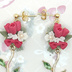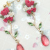 ご覧いただきましてありがとうございます。 樹脂粘土製のパーツとリーフコネクター、チャームを使用したピアスです。 ブーケとリーフコネクターの緑の組み合わせがとてもきれいなお品です。 全長約6cmとちょっと長めなので、耳元を華やかに彩ってくれますよ。 写真ではスタッドピアス(サージカルステンレス)でお仕立てしていますが、お好きなパーツへの変更も無料で承ります。 ご希望のパーツを選択していただきますようお願いいたします。 サフィックス社のスウェットバリアを使用しての金属アレルギー対応も可能です。 ご希望の方は右のメニューより「金属アレルギー対策有」の項目を選んでください。 ※注意※ ☆お花のパーツは樹脂粘土でできています。性質上強い力や水濡れに弱いので、やさしいお取り扱いをお願い致します。 ☆定形外郵便でのお届けのみとなります。 【Size】 ・ブーケ:約1.2cm×1.7cm ・リーフコネクター:30mm×11mm ・雫形ガラスビーズ:13mm×8mm