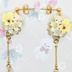 ご覧いただきましてありがとうございます。 樹脂粘土製のパーツとガラスチャームを使用しています。 動くと雫形の小さなガラスビーズが耳元で揺れる、かわいいデザインです。 全体的に淡い色をしているので、耳元を上品に彩ってくれますよ! 写真ではスタッドピアス(サージカルステンレス)でお仕立てしていますが、お好きなパーツへの変更も無料で承ります。 ご希望のパーツを選択していただきますようお願いいたします。 サフィックス社のスウェットバリアを使用しての金属アレルギー対応も可能です。 ご希望の方は右のメニューより「金属アレルギー対策有」の項目を選んでください。 ※注意※ ☆お花のパーツは樹脂粘土でできています。性質上強い力や水濡れに弱いので、やさしいお取り扱いをお願い致します。 ☆定形外郵便でのお届けのみとなります。 【Size】 ・ブーケ:約1.4cm×1.5cm ・雫形ガラスビーズ:6mm×12mm