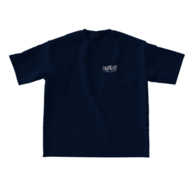 ビッグシルエットTシャツ - XL - 両面1周年記念グッズのロゴTシャツです。 色はネイビーのロゴのみのデザインで普段使いにどうでしょう!! このTシャツを着て配信や動画をみてみては? この商品はpixivFACTORYで作られた商品です。サンプル画像は完成イメージのため、実物と異なる場合があります。