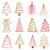 ゴールドと赤の線画のクリスマスツリーセット おしゃれ スタイリッシュ 手書き