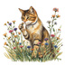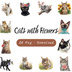 【Catシリーズ】色鉛筆画風-猫と花の癒しクリップアート20点セット│PNG背景透過