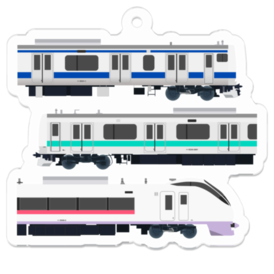 アクリルキーホルダー - 50 x 50 (mm)※この商品はpixivFACTORYで作られた商品です。サンプル画像は完成イメージのため、実物と異なる場合があります。 常磐線を走る車両(E531系、E233系2000番台、E657系)の側面を描いたキーホルダーです。
