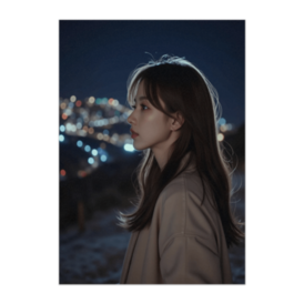 ポスター - B2この商品はpixivFACTORYで作られた商品です。サンプル画像は完成イメージのため、実物と異なる場合があります。 夜の丘に立ち、遠くの街の灯りを静かに見つめる彼女。 風に揺れる髪、頬を照らす淡い光が、心の奥にある記憶をそっと呼び起こす。 静寂の中にある“光のぬくもり”を描いた、幻想的な夜のポートレート。