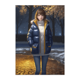ポスター - B2この商品はpixivFACTORYで作られた商品です。サンプル画像は完成イメージのため、実物と異なる場合があります。 雪の舞う夜、公園の小道を照らす柔らかなイルミネーション。 彼女の足元に反射する光が、静かな時間を優しく包み込みます。 派手さを抑えた穏やかな冬の情景を描いた一枚です。