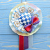 アイカツ!のオデットスワンコーデをイメージしたロゼットです。 衣装のフロント部分のブロックチェックを、2色のリボンを編んで表現しました。 紺と紫の間の絶妙な色のリボンは、紫を選択しました。瀬名さんの色センスはんぱない…… ハートの金のモチーフが多く使われているデザインなので、モチーフレースで囲ってみました。 白鳥の気品あふれる姿と、あかちゃんの元気なイメージがうまくミックスできたと思います。 大きは約13cm、他のロゼットより少し小さめです。 ボールチェーンでバッグチャームのようにぶら下げてお使いいただく形です。裏面にブローチピンは付いていません。 パーツの接着にグルーガンを使用しております。 真夏の車内に放置しないようお願い致します。 1点1点アイカツへの愛と、心を込めて手作りしております。