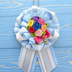 アイカツ!のホワイトスカイヴェールコーデをイメージしたロゼットです。 巻き薔薇はなるべく衣装に近い色を厳選しました。 水色のリボンは実はグラデーションで、細かい星柄が散りばめられています。 実際の衣装は金のハート柄が裾にあると思いますが、ドンピシャのリボンが見付からず… 星柄はスターライト学園、スターライトクイーンなどアイカツ味があるので選びました。 薔薇たちを邪魔しないよう、ピンクのリボンの下にさりげない王冠を配置しました。 大きさは約15cm、ボールチェーンでバッグチャームのようにぶら下げてお使いいただく形です。 裏面にブローチピンは付いていません。 バーツの接着にグルーガンを使用しています。 夏の車内に放置しないようお願いいたします。 1点1点アイカツへの愛と心を込めて手作りしています。