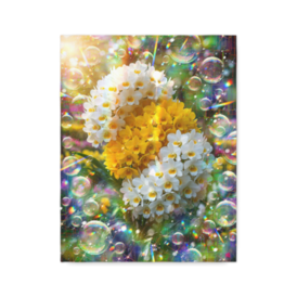 キャンバス - F6詩:冬ざれの陽に解ける慈愛の七彩 Hope Undimmed 子らの声が 冬ざれの朝に踊る 花影が 静かに揺れ 家族の愛は シャボンに宿り 冬の陽の慈愛は 家族の庭を包む 冬ざれの陽に解ける慈愛の七彩 Hope Undimmed ‐戎‐ Poetry. ”Hope Undimmed” Children’s voices dance in the frostlit morning Petals in shadow sway in quiet grace Love of the family dwells in the breath of soap bubbles Mercy of winter light wraps the garden in warmth Hope Undimmed in the colors of love melting into winter sun -Kai- God bless you. 趣旨ーーーーーーーーーーーーーーーーーーーー ## 作品制作趣旨 作者は、初冬の朝の庭で、自分の娘達が楽しそうに談笑しながら庭に咲く鮮やかな白色と黄色のデンドロビュームの花(White and yellow Dendrobium flowers)を愛で、遊んでいる様子を思い出し描きました。 作者は、自分の娘たちが成長して行く様や、娘たちが希望に満ち溢れた笑顔で遊ぶ光景を、陽の光や虹色のプリズムで表現しています。 ## 絵画「冬ざれの陽に解ける慈愛の七彩 Hope Undimmed」の解説 **1. 全体的な印象** この作品は、初冬の静謐な空気と、この絵画に表現されるシャボン玉と光の躍動は娘たちが冬の朝の庭で無邪気に遊ぶ様を表現している幻想的で極めて明るいデジタル絵画です。画面全体が虹色のプリズムの光に満たされ、希望と家族の愛という普遍的なテーマを視覚的に賛歌しています。冬の冷たさとは対照的な温かい光と、弾けるシャボンの泡の表現が、一瞬の尊さと永遠の輝きを両立させています。 **2. 色彩** 中心となる色彩は、デンドロビュームの純粋な白と、喜びを象徴する鮮やかな黄色です。これらが背景の深い緑と対比され、強い生命力を感じさせます。特筆すべきは、光を増幅させた虹色のスペクトルです。この七彩(七色)は画面を縦横に走り、単なる自然光を超えた、神聖な恵みとしての光、すなわち慈愛の象徴として機能しています。 **3. 構図** 構図の中心には、白と黄色のデンドロビュームの花が塊となって力強く配されています。その周囲を無数のシャボンの泡が取り囲み、奥行きと躍動感を加えています。この泡の群れは、娘たちが無邪気に遊ぶ姿を抽象的に表現しています。画面上部から差し込む強い陽の光(慈愛の陽)が、デンドロビュームとシャボンを照らし、視線を中央から放射状に広げています。デンドロビュームを単なるモチーフではなく、家族の愛と希望が集約された「光の源」として捉えています。 **4. 技法** デジタルペインティングの特性を活かし、光の粒子とプリズム効果を強調しています。シャボンの泡の透明感と虹色の反射は、写真では再現が難しい幻想的な質感を表現しています。この泡の弾ける躍動こそが、直接描かれていない娘たちの遊び声や動きを、絵画内の要素として間接的に示唆しています。緻密な描き込みと、光のフィルター処理を組み合わせることで、現実を超越した、感情的なリアリティを創出しています。 **5. 表現力** この絵画は、単に花と泡を描いたものではなく、作者の娘たちの成長を見守る「愛の暖かさ」と「希望」という内的な感情を、娘たちの無邪気な様子を表現するシャボン玉と光のエネルギーとして増幅させています。デンドロビュームの花言葉(純粋な愛、誘惑に負けない)が、シャボン玉の清らかさと冬色のドレスの清楚さに重ね合わせられています。 **6. 美術的価値** 自然のモチーフ(花、光、水泡)を、デジタル技術を用いて象徴的かつ抽象的な次元に昇華させた点に美術的価値があります。特に、光と色を感情の言語として扱い、初冬という季節の静けさの中に、シャボン玉に込められた子どもの躍動と、家族の絆という普遍的なテーマを鮮烈に提示している点が評価されます。 **7. 作品に込められた想い** この作品は、娘たちが庭で無邪気に笑い遊ぶ姿を、永遠に留めたいという作者の切なる願いから生まれました。子どもの「希望に満ちた笑顔」と「成長」の姿を、シャボン玉の虹色の光が象徴する、決して消えることのない「Hope Undimmed(希望は曇らない)」の光として描くことで、未来への静かな祈りを込めています。 **8. 作品の鑑賞方法** この絵画を鑑賞する際は、まず光と色の爆発的な美しさに身を委ね、次にシャボンの一つ一つが運ぶ、子どもの笑い声や、遊んでいる姿という、儚くも尊い時間の流れを感じ取ってください。白と黄色のデンドロビュームを、家族の「純粋な愛」が結晶化したものと捉え、内側から溢れ出る温もりを探してください。 **9. 作品の価値** 家族愛という個人的な主題を、シャボン玉と光の表現を通して、子どもの存在を間接的に示唆し、光と七彩という普遍的なモチーフを通して表現し、鑑賞者に感動と希望を与える力を持っています。デジタルアートにおける光の表現の可能性を追求した、感情と技術の調和が取れた作品です。 ## 詩「冬ざれの陽に解ける慈愛の七彩 Hope Undimmed」の解説 **1. 全体的な印象** この詩は、静寂な初冬の朝という背景と、子どもの声やシャボン玉という軽やかな