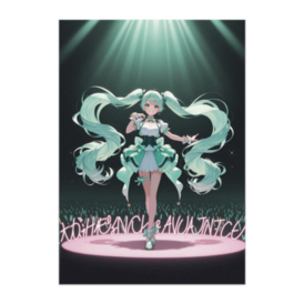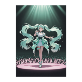 ポスター - B2この商品はpixivFACTORYで作られた商品です。サンプル画像は完成イメージのため、実物と異なる場合があります。 爽やかなミントグリーンの衣装が映えるアイドル美少女のアニメ風ポスター。ツインテールが大きく揺れる元気なポーズと柔らかなステージライトが、フレッシュで可愛い雰囲気を演出します。お部屋を明るくしたい方にぴったりです。
