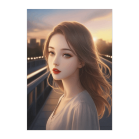 ポスター - B2この商品はpixivFACTORYで作られた商品です。サンプル画像は完成イメージのため、実物と異なる場合があります。 柔らかな夕陽に照らされながら、橋の上でふと振り返る少女を描いたノスタルジックな一枚。淡い光に包まれた横顔が、どこか切なく、儚く、美しい時間を閉じ込めています。心が静かに満たされるような優しい雰囲気のポスター作品です。
