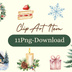 【水彩画風】エレガントなクリスマスモチーフ クリップアート 11点セット/ PNG透過