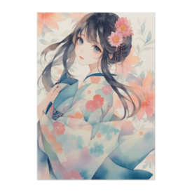 ポスター - B2この商品はpixivFACTORYで作られた商品です。サンプル画像は完成イメージのため、実物と異なる場合があります。 柔らかな淡彩で描かれた和装の少女が、花々に包まれるようにたたずむ美しい一枚です。繊細な色使いと優しい表情が、静かな春の情緒を感じさせます。飾るだけで空間がふんわりと華やぎ、心を癒すポスター作品です。