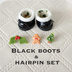 🖤ブラックブーツ&ヘアピンSET🎄 サンタブーツ風のブラックブーツ、ヘアピンはヒイラギ・ジンジャーマン・ツリーの3つです🎄⊹₊⟡⋆˚⊹ クリスマスに向けてぬいちゃんたちのおめかしにいかがでしょうか🎅🎵 𓇠𓇠𓇠𓇠𓇠𓇠𓇠𓇠𓇠𓇠𓇠 靴はtwst10cmぬいサイズを目安にお作りしています🥾 ほかのぬいちゃんでも履けた!というお声もいただいておりますが、当方ではお試しができていないため、サイズ感はそれぞれの子に合わせて見てあげてください☺️🧺 一つ一つ手作りしております🛠️ 多少の歪みやズレ、傷等はご了承下さい🙇♀️ 完璧な作りをお求めの方はご購入をお控え下さい(*ᴗˬᴗ)⁾⁾ ハンドメイドの味をお楽しみいただければ幸いです⸜(*ˊᵕˋ*)🍀 .· ⎯⎯⎯⎯⎯⎯⎯⎯⎯⎯⎯⎯ ⟡.· ※あんしんBOOTHパックでの発送になります✉️ お会計を分けてしまうと送料もその都度かかります。仕様上同梱が出来ませんので出来るだけ一度のお会計をオススメします.ᐟ.ᐟ ⟡.· ⎯⎯⎯⎯⎯⎯⎯⎯⎯⎯⎯⎯ ⟡.· 繊細な作りになっておりますので、過度に力を加える・無理に引っ張ると破損する恐れがあります。 ⟡.⎯⎯⎯⎯⎯⎯⎯⎯⎯⎯⎯⎯ ⟡.· 小さなお子様、ペットの誤飲には特にご注意下さい🙇♀️ 水濡れ・熱い場所で長時間保管等は劣化の原因になりますのでお気をつけ下さい😌 ⟡.· ⎯⎯⎯⎯⎯⎯⎯⎯⎯⎯⎯⎯ ⟡.· 商品に不備があった際は3日以内にご連絡下さい🙇♀️その場合お手数をお掛け致しますが着払いで返送して頂き、新しく製作し改めて発送させていただきます。日数が経ってしまってからのご対応は出来かねますのでご了承下さい。 ※サイズが合わなかった等の返品・返金は出来かねます🙇♀️ よろしくお願い致します☺️🍀