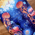たこくらげが月を知って月に会いに行くお話です。途中、まるちゃんや、色んな海の生き物たちと出会います。色鮮やかに描いた初制作の絵本です。
