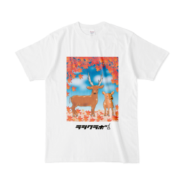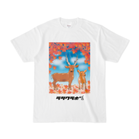 Tシャツ - XL - 白《商品説明》 商品名 もみじのトンネルを歩く鹿の親子 制作者 たかくん(広島) 《つくり手さんから》 もみじのトンネルを歩くシカの親子を描きました。 この商品はpixivFACTORYで作られた商品です。サンプル画像は完成イメージのため、実物と異なる場合があります。