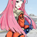 カレンちゃん+ミレーヌ・ジーナスのパイロットスーツ【マクロス7-07】 背面 Back Angle ロングヘア Long HairStyle Karen is wearing Mylene Flare Jenius's PilotSuit【MACROSS7-07】