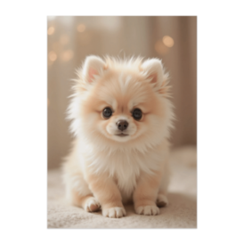 ポスター - B2この商品はpixivFACTORYで作られた商品です。サンプル画像は完成イメージのため、実物と異なる場合があります。 もこもこの毛並みとつぶらな瞳が愛らしい、ベビーポメラニアンのポスターです。 柔らかな光に包まれた姿はまるでぬいぐるみのようで、見ているだけで心がほぐれます。 リビングやデスク周りに癒しのワンポイントとして最適です。