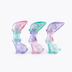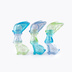 サイズ|高さ約6cm 素 材|PVC 「きらめき」がテーマのICHIです。 カラークリア素体にシルバーのラメを入れた3体のパーツを組み替えました。 塗装はありません、形と色をお楽しみいただけたら嬉しいです。 🧊🫐🍐|BLUE(ライトブルー/ブルー/ライムグリーン)3体セット 🍇🍑🍏|PINK(パープル/ピンク/エメラルドグリーン)3体セット お一人様各1セット限り(計2セットまで) 今後のイベント販売予定は現時点ではありません (BOOTH通販分で終了を予定しています)