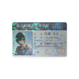 佐藤圭太\放課後☆プリンス 初の公式グッズ!/ 変な部活に放り込まれた佐藤を中心に、 男子高校生6人の“わちゃわちゃ青春物語”―― 『放課後☆プリンス』より、彼らの通う 私立綺羅星高校の学生証風プラカード が登場🌟 推しが主役のリアル風デザインで、作品を知らない方でも楽しめる一枚。 さらに今回は 初期ロゴ&初期ビジュアル を使った“記念版”! ロゴ刷新に伴い、このデザインは 最初で最後 かもしれません✨ しっかり厚みのあるカードで、飾っても持ち歩いても映えるクリスタルホログラム仕様💳 あなたの推しプリンスを、お迎えください💖 この商品はpixivFACTORYで作られた商品です。サンプル画像は完成イメージのため、実物と異なる場合があります。