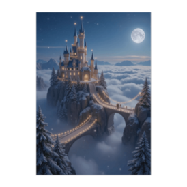 ポスター - B2この商品はpixivFACTORYで作られた商品です。サンプル画像は完成イメージのため、実物と異なる場合があります。 雲海の上にそびえる幻想的なクリスマスキャッスルを、月明かりのもとで描いたロマンチックなポスターです。雪の森と光の道が静かに輝き、まるで夢の世界へ続くような美しい冬の情景を表現しています。落ち着きと幻想が共存する、上質なクリスマスアートです。