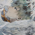 オリジナル 手描きイラスト 男の子 青年 「風花が散る」 正方形サイズ 透明水彩