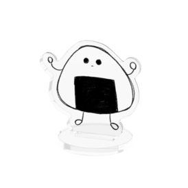 アクリルフィギュア - 50x50mmおにぎりのキャラクターのアクリルキーホルダーです。 両手でガッツポーズをとっており、まるでクイズで正解をとって喜んでいそうです。 この商品はpixivFACTORYで作られた商品です。サンプル画像は完成イメージのため、実物と異なる場合があります。
