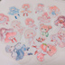 【D】かわいい水彩風イラストダイカットシール 15種30枚 ダイカットステッカー