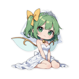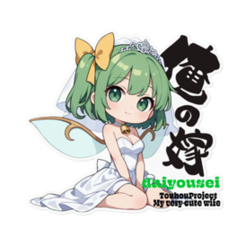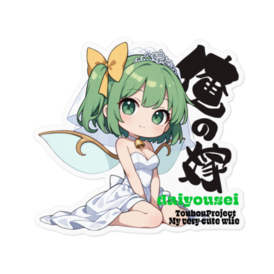 ステッカー - 160 x 160 (mm)(キャラのみ)💍💖💒 💚 幻想郷の癒し!大妖精(ウエディングver.)が、永遠の愛を誓う「俺の嫁」ステッカーになって登場!💍💖 大ちゃん推しのあなたへ贈る、特別に可愛らしい愛の結晶です。 東方Projectの大妖精が、純白のウェディングドレスを纏った、心ときめくチビキャラデザインであなたの元へ!いつもの元気な可愛さに、花嫁姿の神聖さが加わった、ファン必携のアイテムです。 このステッカーは、あなたが大妖精に捧げる**「永遠の愛」の証。健気で可愛い大ちゃんとの「結婚」**という夢を形にしました。 毎日持ち歩くアイテムに貼って、大妖精と**「ずっと一緒」**という夢を叶えませんか? 東方Projectファン、そして大妖精を心から愛するあなたのために。 この商品はpixivFACTORYで作られた商品です。サンプル画像は完成イメージのため、実物と異なる場合があります。