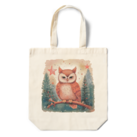 【冬の夜の森のフクロウ】水彩タッチのエコバッグ