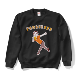 スウェット - XL - ブラックユーモアビールデザイン「プロビーラー」 タグ:ビール ユーモア ネタ おもしろ ダジャレ ボーリング プロボウラー 飲み会 宴会 アルコール パブ
