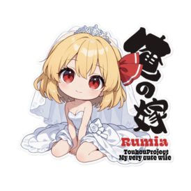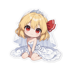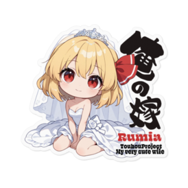ステッカー - 160 x 160 (mm)(キャラのみ)💍💖🌙 闇の妖が花嫁に!ルーミア(ウエディングver.)が、あなたの愛を独り占めするステッカーになって登場!💍💖 ルーミア推しのあなたへ贈る、最高に可愛くて、特別な愛の形です。 東方Projectのルーミアが、純白のウェディングドレスを纏った、無垢な愛らしさ満点のチビキャラデザインであなたの元へ!普段の姿とは違う、花嫁姿のルーミアは、破壊力抜群の可愛さです。 このステッカーは、あなたがルーミアに捧げる**「永遠の愛」の証。ちょっぴり危なっかしいけど可愛いルーミアとの「結婚」**という夢を形にしました。 スマホ、PC、手帳など、お好きな場所に貼って、ルーミアと**「永遠の愛」**を共有しませんか? 東方Projectファン、そしてルーミアを心から愛するあなたのために。 この商品はpixivFACTORYで作られた商品です。サンプル画像は完成イメージのため、実物と異なる場合があります。