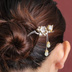 <受注制作>サザンカと木蓮の花のかんざし - 清々しい雰囲気を醸し出す K202 ※シルバーだけでなく、K10、K18、PT900などでも制作が可能ですので、ぜひご相談ください。 サザンカをテーマにしたかんざしで、ネフライト製の木蓮の花が下で優雅に揺れています。優美なデザインは、和装の美しさをさらに引き立てます。ネフライトの柔らかな薄緑色が、木蓮の花びらと見事に調和し、まるで自然の中にいるかのような清々しい雰囲気を醸し出します。このかんざしを身につけることで、特別な日の装いに華やかさと落ち着きを兼ね備えたアクセントを加えることができます。サザンカのテーマは、冬の訪れを告げる花として、季節の移り変わりを感じさせるとともに、心を和ませる温かさをもたらします。 制作期間:1〜3週間 なるべく早く手元に届くよう、丁寧かつスピーディーに制作しています。 ご了承ください。 素材:シルバー、ネフライト、パール サイズ:全長15.5cm ----------------------------------------------------------------------------- ※ 製品のカスタマイズが可能 当店では、お客様がより自分らしいジュエリーを手に入れることができるよう、既存の商品をカスタマイズすることが可能です。 例えば、お好みの宝石に変更することや、デザインパーツを追加することができます。また、新しいデザインのジュエリーをフルオーダーすることも可能です。 お客様のご要望に合わせたご提案を行っておりますので、お気軽にご相談ください。私たちは、お客様が長く愛用できるジュエリーを提供することをお約束いたします。 ------------------------------------------------------------------------------ ※ 注意事項 制作開始後のご返金・発送後のご返品・返金には対応できません。 モニター環境によって実物と色の違いが生じる場合があります。 温泉では、硫化の恐れがあるため、外して入浴することをおすすめします。 メッキ物は汗や水などに弱いため、使用後柔らかい布で拭き取ってください。 酸化防止のために空気やほこりに触れないように保管してください。 運動やシャワーの時なるべくつけないでください。