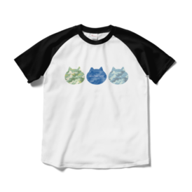 ラグランTシャツ - XL - ホワイト×ブラック陸海空をイメージしたカラーの カモフラ模様ねこのTシャツです 海はさくら耳カットになっています この商品はpixivFACTORYで作られた商品です。サンプル画像は完成イメージのため、実物と異なる場合があります。