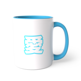 水色の愛のツートンカラーマグカップ