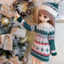 <限定商品> 【販売期間】2025年12月4日〜2025年12月8日 【発送期間】2025年12月11日より順次発送予定です。 クリスマス柄のニットワンピース、帽子、レッグウォーマーです。 定番のクリスマスカラーですが、毛足の長い糸も使用してふわふわとした可愛らしさがあるのがポイントです。 後ろに開きがないデザインのため、ヘッドと腕を外しての着用を推奨します。 <Body Size> 1/4サイズ(MDD、MDDもちあし、imomodoll など) <Size(cm)> ◆ワンピース 着丈:18 身幅:10 袖丈:14 ◆帽子 丈:7 幅:8 <Material> カーディガン/ナイロン100% ワンピース/コットン72%、ナイロン28% <注意注意事項> ※撮影で使用しているドール本体、ウィッグ、アイ、靴などはセットに含まれておりません。 ※一度洗いをかけておりますが、長時間の着用による色移りにご注意ください。 ※手洗い可能です。伸びやすいため、形を整えてから平干しをおすすめします。 乾いた後はアイロンで潰さないようにスチームを当てて整える事をおすすめします。 ※商品写真は出来る限り実物に近くなるよう調整しておりますが、お使いの端末や閲覧環境により、色味や質感がイメージと多少異なる可能性があります。
