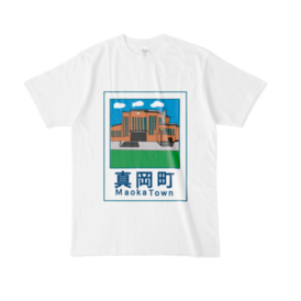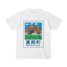 Tシャツ - XL - 白樺太南西部の真岡町にあった真岡駅をイメージしたイラストのカントリーサインのTシャツを作りました! この商品はpixivFACTORYで作られた商品です。サンプル画像は完成イメージのため、実物と異なる場合があります。