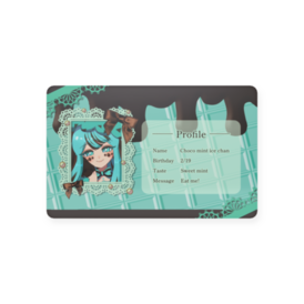 プラスチックカード - 会員証(85.6 × 54mm)チョコミントアイスちゃんのプロフィールカードです。 裏面にはチョコミントちゃんのイラスト付き。 この商品はpixivFACTORYで作られた商品です。サンプル画像は完成イメージのため、実物と異なる場合があります。