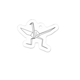 アクリルキーホルダー - 50 x 50 (mm)**「足の生えた折り鶴」**という、どこかシュールでユニークなモチーフを、黒のシンプルな線画だけで表現したアクリルキーホルダーです。 伝統と異形が融合した、目を引くデザイン。日常にちょっとした「?」と「クスッ」を添えてくれます。 この商品はpixivFACTORYで作られた商品です。サンプル画像は完成イメージのため、実物と異なる場合があります。