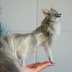 𓇬𓇬𓇬 霧狼尾(Murobi) 𓇬𓇬𓇬 誕生日 12/1 [作品について] オリジナルの獣がモチーフのアートドール作品です。中にワイヤーが入っていて自由に動かせるのが特徴です。 [ストーリー] 冬の荒野 薄暮の空へ遠吠えを放つ。 熱い吐息が白く 生きている証を刻んでいる。 行手を塞ぐ断崖も、 肩に積もる雪も、 この歩みを止めはしない。 この大地は私の味方だから。 __________ [大きさ] 体高 20cm 体長 44cm(半分は尻尾) [可動部位] 耳、首、ボディ、手足、尻尾 __________ [お取扱い注意点] -パーツの塗装面(鼻や手足)はUVカットのクリアスプレーを3層重ねております。それでもデリケートですので優しく扱ってください。 -可動部位の芯材はステンレスワイヤーとアルミワイヤーを併用しております。金属疲労による折れの原因となりますので押しつぶすように曲げるのはお避けください。 -作品が汚れてしまった場合: 軽い水拭きに耐えられます。お顔と手足は優しく拭いてあげてください。 -毛並みが乱れた時は犬猫用ブラシまたは歯ブラシで梳かして頂きますと元通りになります。 -修繕が必要になった場合はご連絡ください。修繕承ります。 -材質: ガラスカボションアイ、フェイクファー、ワイヤー、アクリル絵具、UVレジン等 __________ ご質問等ございましたら気軽にご質問くださいませ。