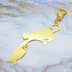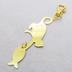 ステンレス製 ゴールドカラー 魚を狩る猫のシルエットモチーフのキーホルダー ステンレス板 金具変更可