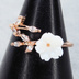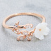 ピンクゴールド 白い花の大人かわいいリング キュービックジルコニア フリーサイズ