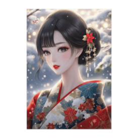 ポスター - B2この商品はpixivFACTORYで作られた商品です。サンプル画像は完成イメージのため、実物と異なる場合があります。 雪降る静かな冬の森を背景に、赤・青・白の華やかな着物を纏った女性を描いた一枚。 繊細なポインセチアの髪飾りと柔らかな光が、聖夜の美しさと気品を引き立てます。 冬のインテリアにぴったりな、上品で温かな作品です。