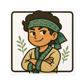 ステッカー - 100 x 100 (mm)森の奥でひっそり暮らす“仮面薬師”りゃんシー。 これは、彼がふと仮面を外し、腕を組んで“ふん”と笑った瞬間を切り取ったステッカーです。 アイヌの血を引く彼の衣装は、山の精霊の模様を織り込み、 背後には薬草たちがくすぐったそうに揺れています。 手帳に貼れば旅のお守りに。 PCに貼れば、森の風がそっとついてくる。 ちょっと照れ屋で、でも頼れる薬師を、お好きな場所へ連れていってあげてください。
