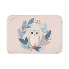 【クリスマスリースとフクロウ】ふんわりブランケット(ピンクコーラル/ブラック&メヌエット)