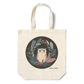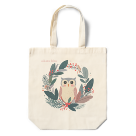 【クリスマスリースとフクロウ】エコバッグ[ナチュラル/ブラック]